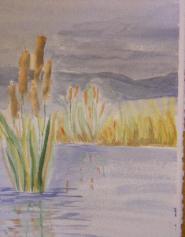 Cattails in the Pond Alana Hastings Artist Watercolor $100